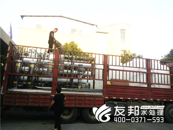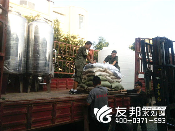 在這驕陽似火,揮汗如雨的季節,大清早就是30多度的高溫,鄭州友邦的師傅們沒有松懈,依然在堅持裝車發貨。這是發往河北飼料廠的10噸純凈水設備。