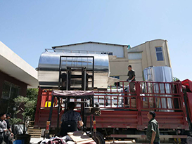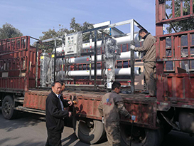 正在裝車的這套每小時出水5噸,型號為YB-CJS-005的純凈水設備是發往安徽的。該設備對原水無需加熱,更沒有相變過程;可以去除水中的細菌、病毒、膠體、有機物和98%以上的溶