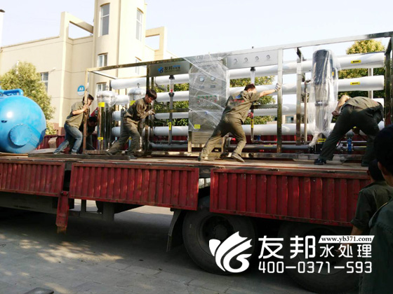 這套型號為YB-CJS-008的水處理設備正在裝車發貨,是發往新鄉某新材料有限公司。河南友邦在此次合作中為新鄉某新材料有限公司提供提供的8T/H純水系統,完美的解決了對方在生