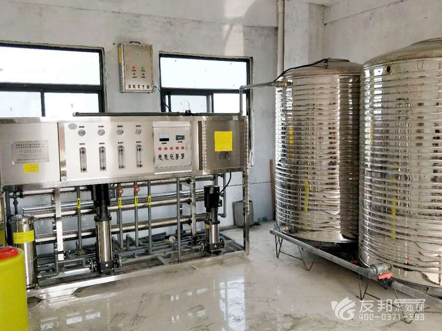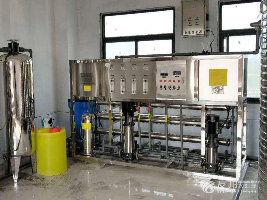 原水→原水加壓泵→多介質(zhì)過濾器→活性炭過濾器→軟水器→精密過濾器→第一級反滲透→純水箱→紫外線殺菌→微濾過濾器→用水點